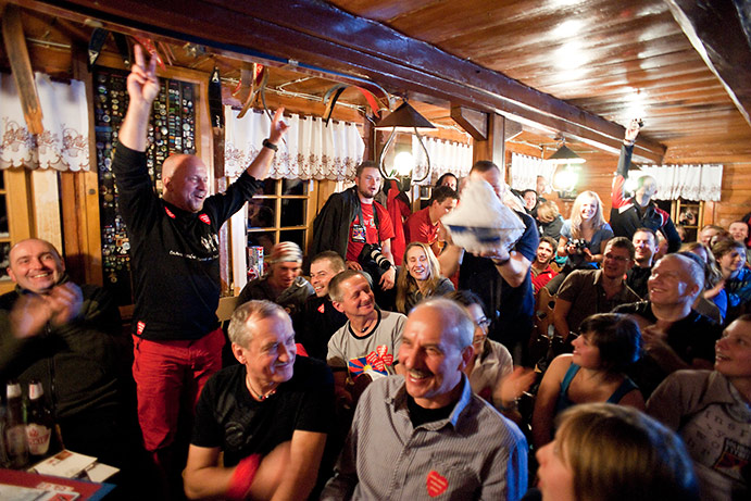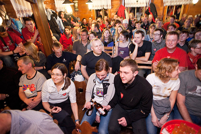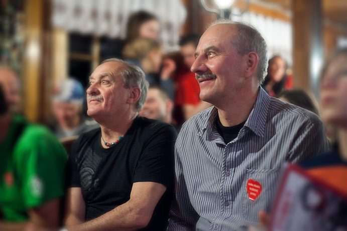 Trudne warunki pogodowe nie przeszkodziły ponad setce ludzi zaangażowanych w garnie WOŚP w sercu Karkonoszy. Co prawda tym razem znany himalaista Piotr Pustelnik został pokonany przez śnieg na polskich drogach i nie podołał trudom dojazdu, ale zjawili się m.in. Anna Czerwińska, Leszek Cichy, Krzysztof Wielicki, Bogdan Jankowski, Bogusław Ogrodnik, Janek Mela, Darek Załuski (więcej o gościach oraz o programie tutaj) – a także niezastąpieni Zbyszek Piotrowicz i Tomek „Banan” Banasiewicz – którzy fenomenalnie, pełni werwy i humoru, poprowadzili aukcję górskich pamiątek.