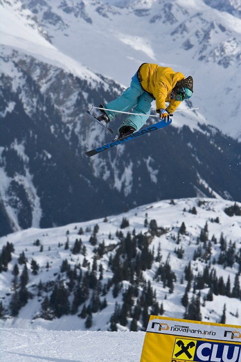 Foty w pionowym kadrze: na pierwszym narciarz głową wali w chmurę, na drugim narciarz szoruje tyłkiem po grani :-) Sweet :-)